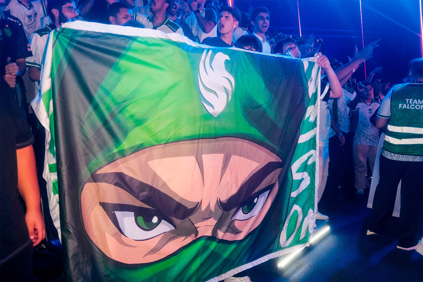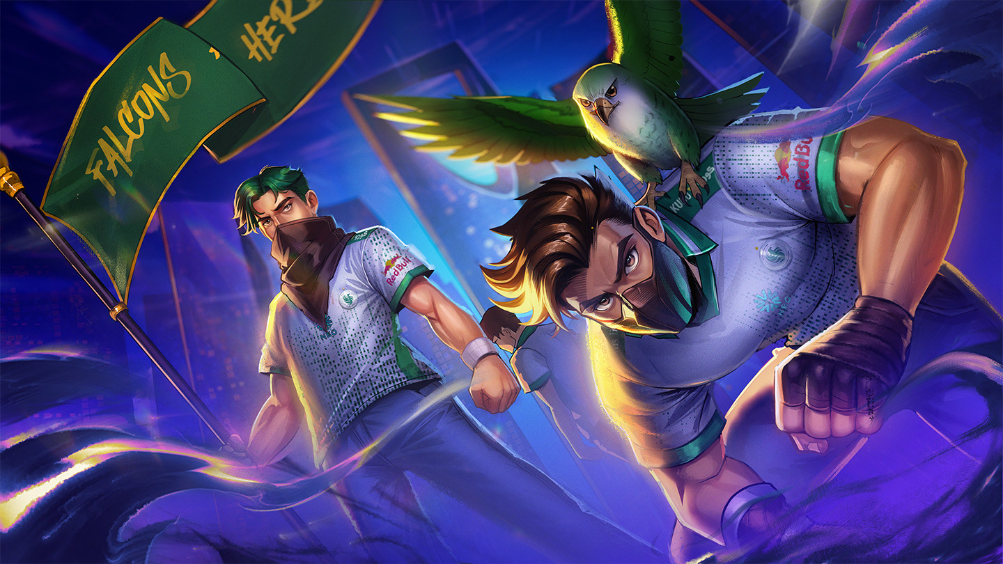 The concept was to blend modern esports illustration with the national identity of Saudi Arabia,as the tournament was hosted in Saudi and Team Falcons represented the nation on a global stage.
